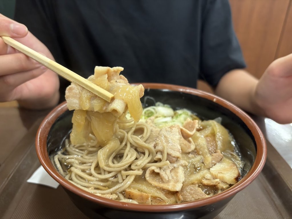結果、大満足。ごぼうチップスたっぷりのかき揚げ蕎麦や、チャーシュー入りの肉蕎麦はどちらも絶品!24時間営業なので、SAに立ち寄る機会があればぜひお試しあれ。