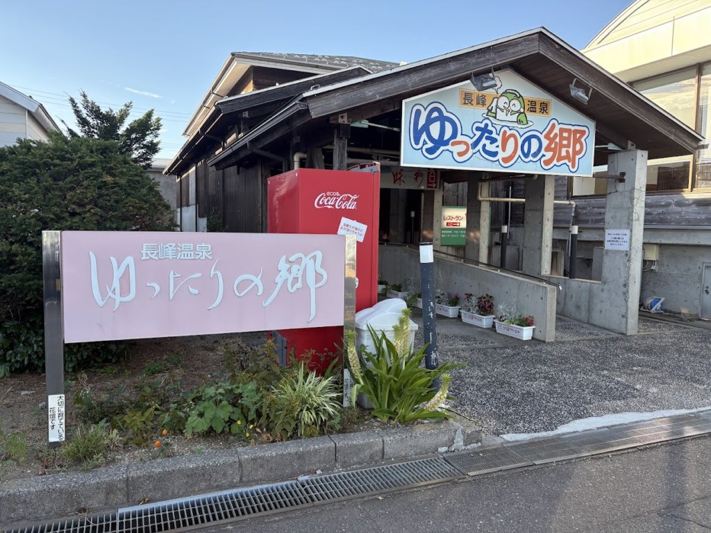 そして旅の締めくくりは、長峰温泉ゆったりの郷へ。天然温泉で源泉100%のお湯。めちゃくちゃ良かったです。ナトリウム塩化物泉(高張性・弱アルカリ性)らしいのですが、少しぬるっとした泉質で、肌もツルツルに。露天風呂から見える田園風景も、旅の疲れをほっと癒やしてくれました。入館料は大人(中学生以上)740円、小学生350円、小人(3歳以上)100円とリーズナブルなのもポイントです。