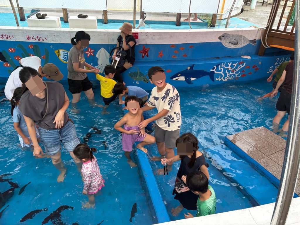ドクターフィッシュに指を入れて“つつかれまくる”体験や、じゃぶじゃぶ海水プールでは魚たちと一緒に水遊びができるなど、子どもたちは終始大興奮。