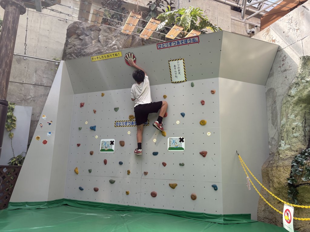 空中アスレチックは有料(おとな1,000円、こども500円)ですが、すべり台やジャングルネット、ボルダリングなどは無料で遊べます。